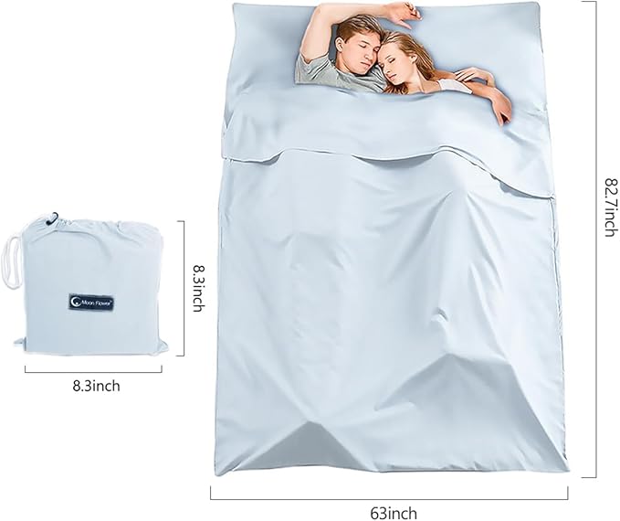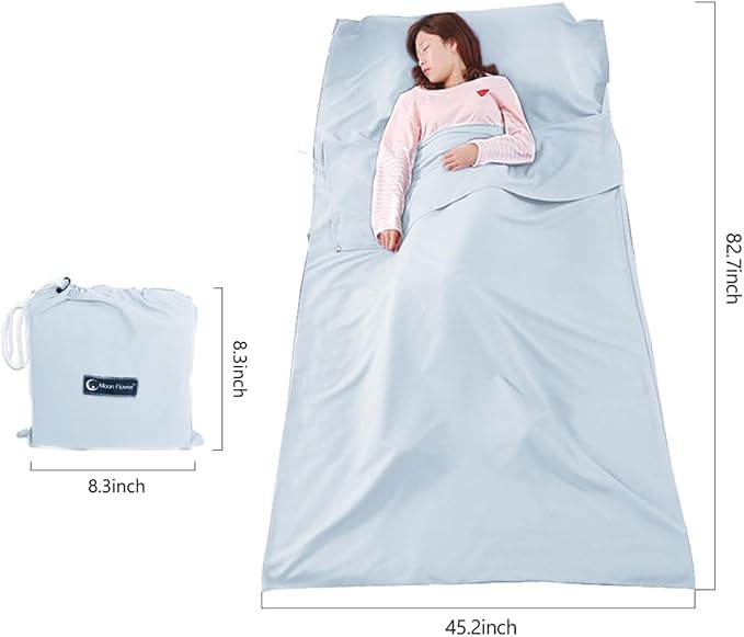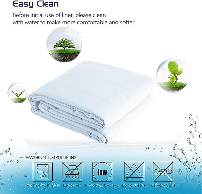 - 【Lightweight & Easy To Carry】- Our sleeping bag liner comes in two specifications: 45.2x82.7 inches=20oz (573g) and 63x82.7 inches=23oz (650g). Despite its generous size, it can be easily folded into a compact 8.3x8.3-inch pocket when not in use. Travelers will find it convenient to pack in their backpacks without adding extra weight, while business people can effortlessly carry it in their handbags.