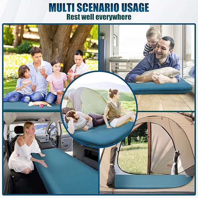 - 【Suitable for All Seasons】Features with a high-density memory foam and 3” thickness, this sleeping mattress has a R-value in 9.5, ensuring excellent thermal insulation and warmth, making this self-inflating sleeping pad ideal for various camping conditions, perfectly suitable for using in spring, summer, fall, and winter, let you enjoy a comfortable sleep year-around when traveling with family or friends.