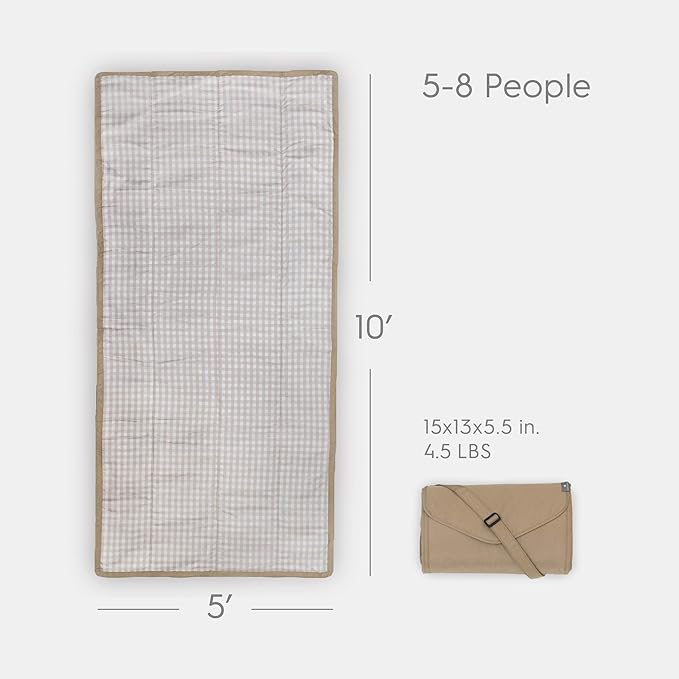 Little Unicorn Outdoor Family Picnic & Beach Blanket, Water-Resistant, Compact Fold, XL Size, 5 x 10 feet, (Beige Buffalo Check)