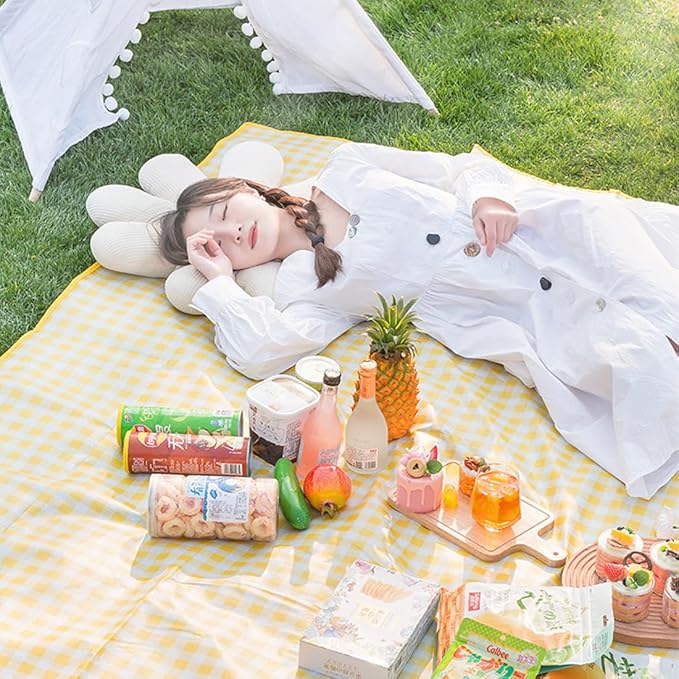 - 🌴【 Quality material 】 Our foot pads are made of high quality Oxford fabric, non-toxic, lightweight and comfortable. Charming photo design, cute gingham blanket with white and yellow check looks great in photos, on grass or on the beach. The perfect companion for your daily and outdoor life! And a gift for your family.