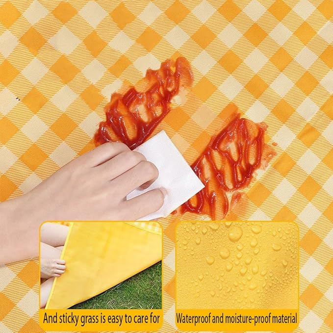 Outdoor Picnic Blanket,Extra Large Picnic Blanket Beach Blankets, Picnic Mat Waterproof Sand Proof Foldable Portable for Outdoor Camping Hiking Travel Grass Music Festival Lawn Mats (Yellow)