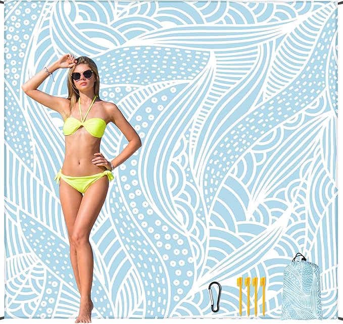 - 🌊MULTIFUNCTIONAL BEACH ACCESSORIES-It can be used as a beach blanket while traveling, a toy mat for children at home, a picnic blanket, even ground cover, etc. Our sand-free beach blanket designed with portability is perfect for all occasions.Leave it in your trunk after a quick-wipe clean instead of cleaning and always have it handy. Tips: It is allowed to be machine washed but with no bleach or iron.