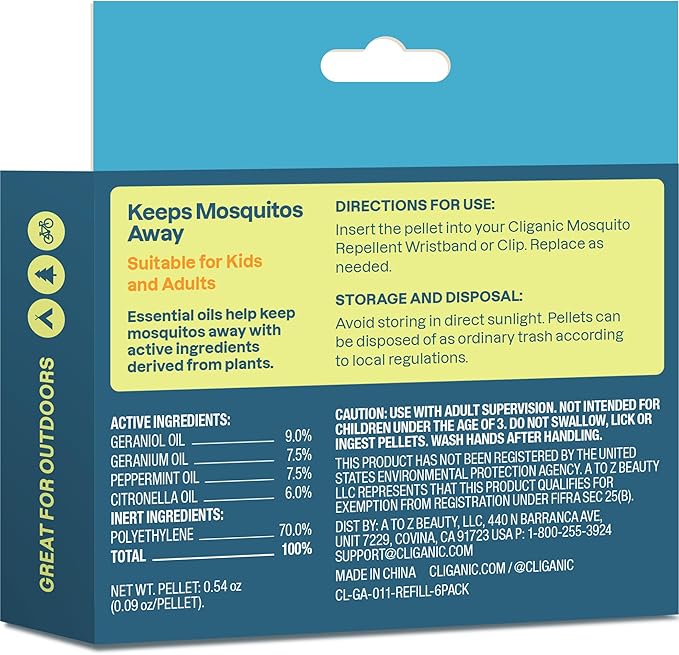 - 6 Refill Pellets for Cliganic Mosquito Repellent Wristbands - Affordable, travel-friendly mosquito repellent gear for camping, hiking, backyards, patios & more