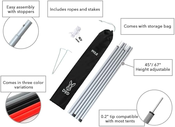 - Includes 2 three-piece poles, 2 storm ropes, and 2 pegs for a comprehensive setup.