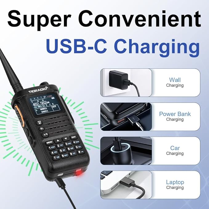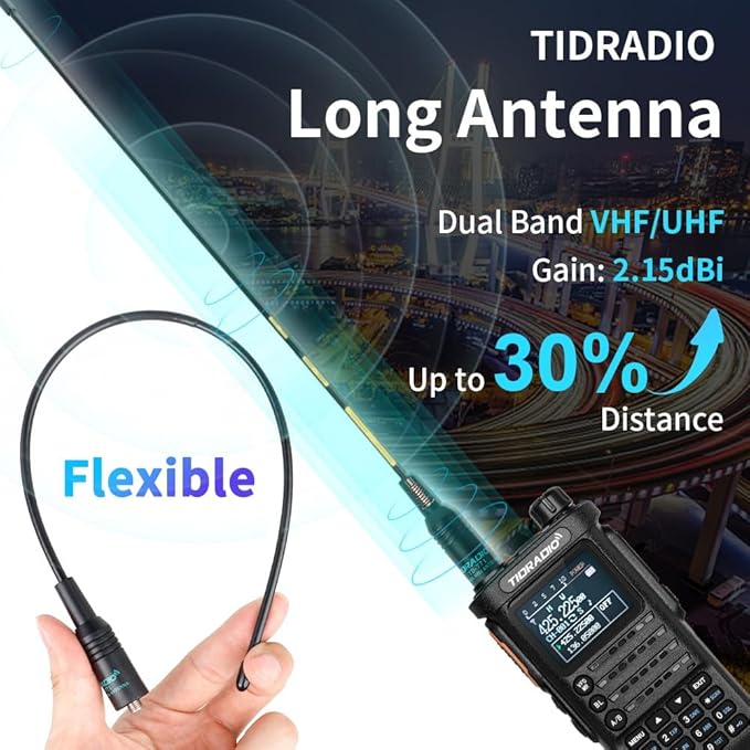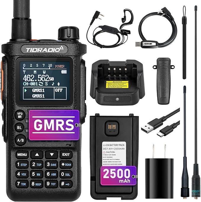- ⑥Kit Includes: 1 x TIDRADIO TD-H8 GMRS radio, 1 x 2500mAh battery, 1 x standard antenna, 1 x GMRS antenna,1 x charger and usb-c charging cable, 1 x earpiece, 1 x CH430 USB programming cable,1 x wrist strap,1 x belt clip,1 x user manual