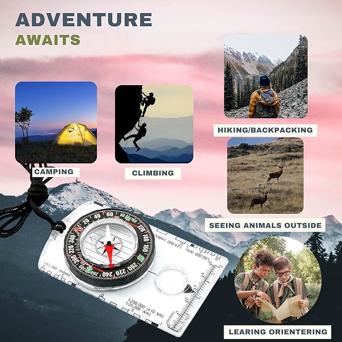 - HIGH QUALITY: This is a high quality product that it is a waterproof compass made with acrylic materials to prevent interference with the magnetic needle and ensure accurate readings. It is durable, compact, and portable, that makes it perfect for every outdoor activity