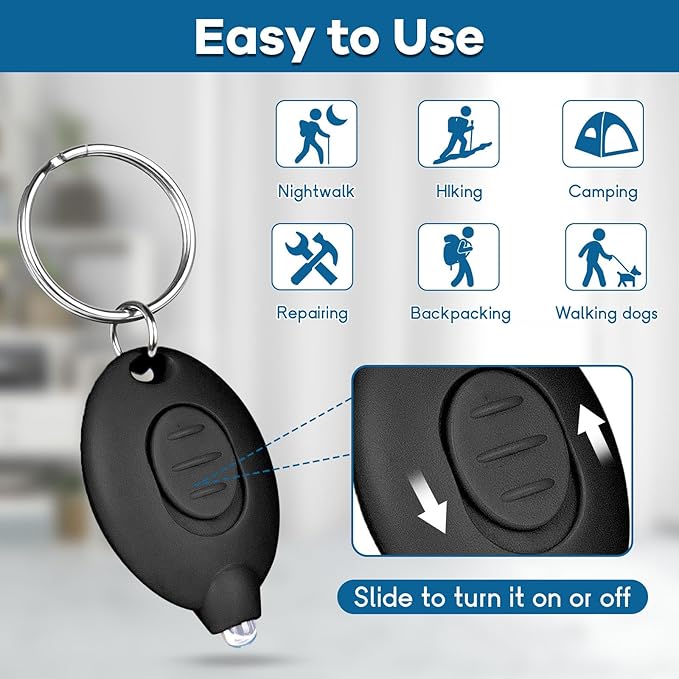 - Wide Application: Comes with 24 pcs keychain flashlights. It is a perfect tool for outdoor activities like camping, hiking, repairing and so on. It's also a good choice for Christmas present.