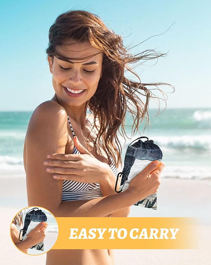 - 🏖OVERSIZED & COMPACT: 79" x 83" Extra large beach mat fits 4-6 adults seated or 4 adults lying down. It’s the best choice for family and friends gatherings. Only 8" x 4" after folding, comes with a carabiner for easy portability and storage.