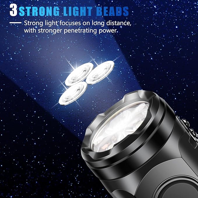- 【Rechargeable】Equipped with Type-C cable, rechargeable, large battery capacity, can continue to illuminate for hours after fully charged. 3 ultra-bright LED beads can instantly illuminate dark roads and corners.
