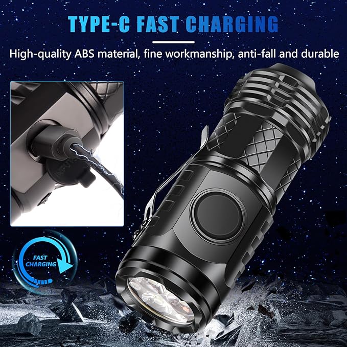 - 【Multifunctional Flashlight】There is a clip on the side, you can clip the flashlight on your hat, pocket, clothes, etc., freeing your hands while still providing stable light.