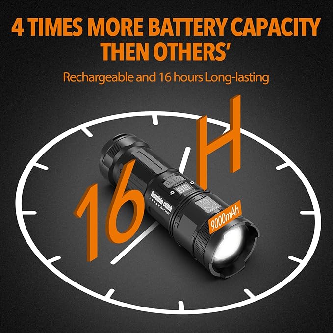 MAXME100® Dual Head Long Throw Flashlight, Flashlight High Lumens, Rechargeable, Super Bright, Powerful, Heavy Duty Long Lasting Flashlight for Outdoor Activity & Emergency Use