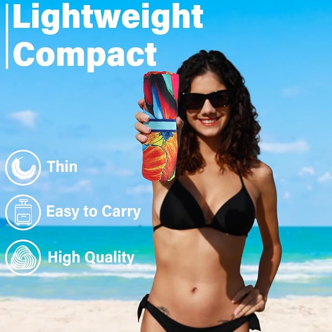 - LIGHTWEIGHT AND PORTABLE: The microfiber beach towels are made of ultra fine microfiber material that is incredibly thin and lightweight. They come with a convenient carrying strap that makes it easy to take them with you wherever you go. When folded, they are as small as a mobile phone and can easily fit in your pocket or beach bag