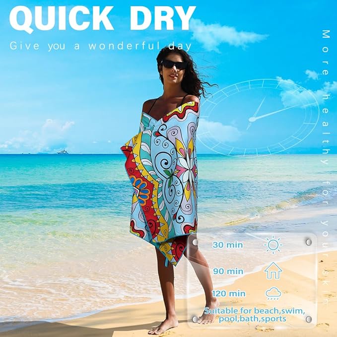 - HIGHLY ABSORBENT AND QUICK DRY: The microfiber beach towels are designed to quickly absorb water from your body, leaving you feeling dry and refreshed. Thanks to their unique microfiber construction, they dry up quickly, making them the perfect choice for a day at the beach or pool