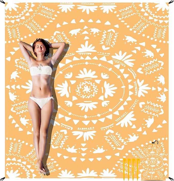 - Essential Beach Accessory - You'll have everything you need! With more style and color options, 4 sand corner pockets, and 4 stakes to double secure the large beach blanket in place, you can prevent it from blowing away in high winds. You'll definitely stand out with this personalized boho beach blanket decor for camping, travel, or other outdoor activities