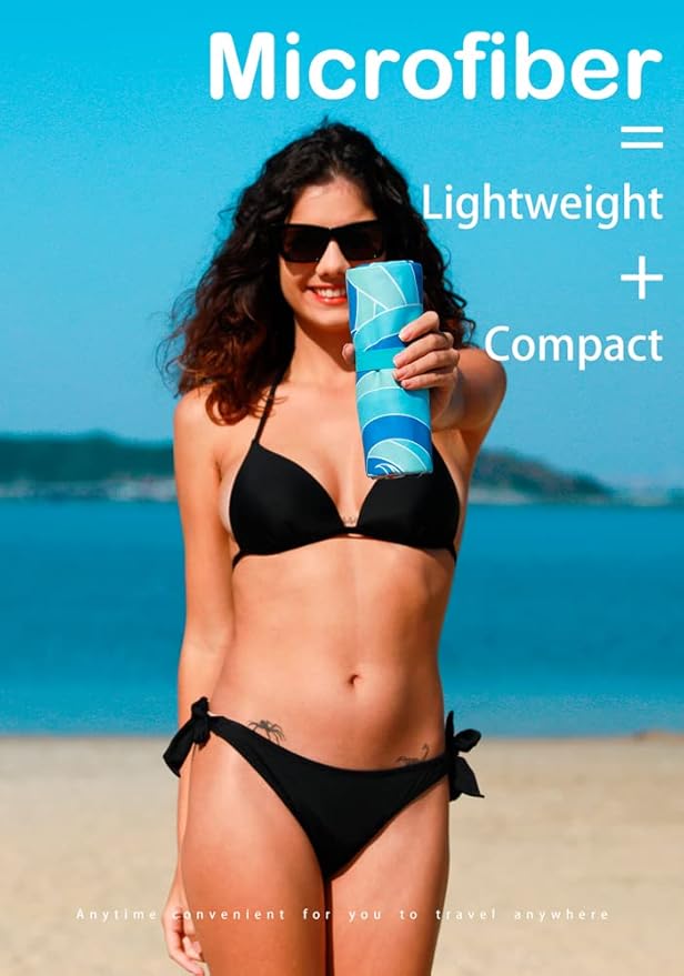 - LIGHTWEIGHT AND PORTABLE: The microfiber beach towels are made of ultra fine microfiber material that is incredibly thin and lightweight. They come with a convenient carrying strap that makes it easy to take them with you wherever you go. When folded, they are as small as a mobile phone and can easily fit in your pocket or beach bag