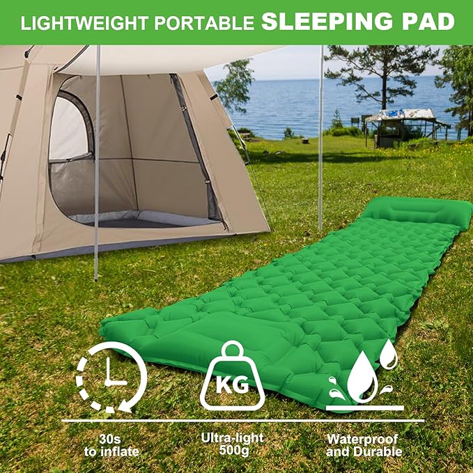 - 🏕️【Quality Assurance & Perfect for Gifting】Each sleeping pad undergoes rigorous quality checks before shipping, ensuring it arrives in perfect condition. It makes an ideal gift for outdoor enthusiasts. If you're not completely satisfied, contact us directly for assistance. We are committed to your complete satisfaction.