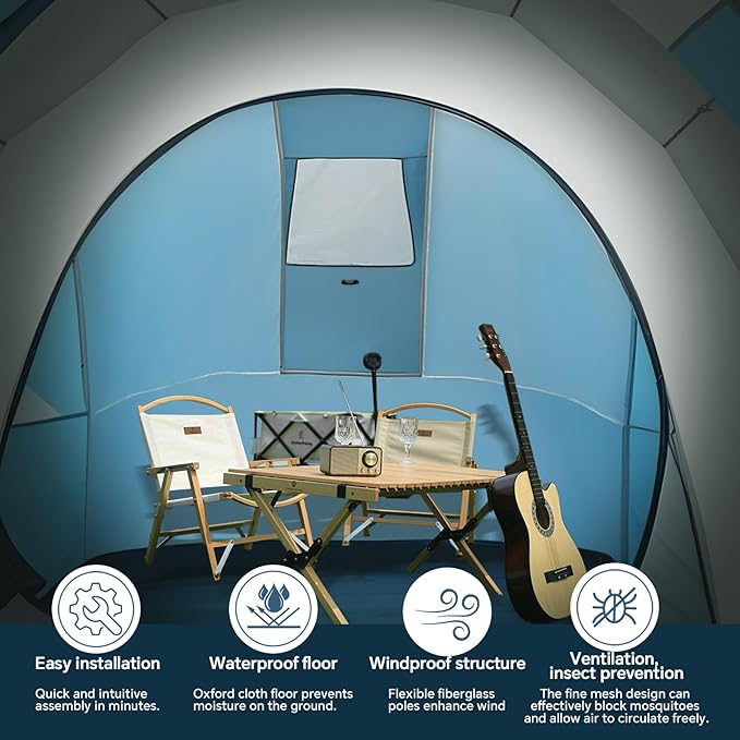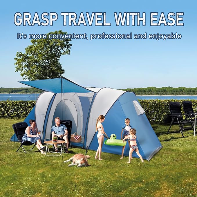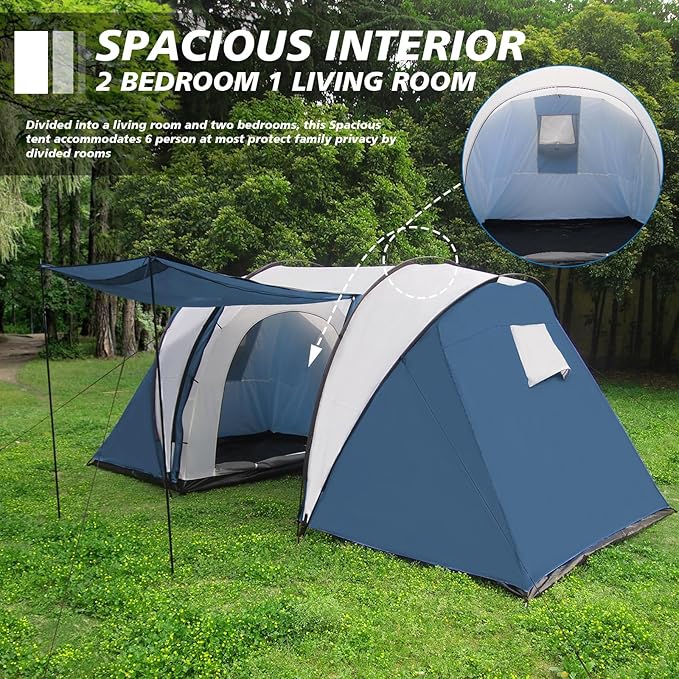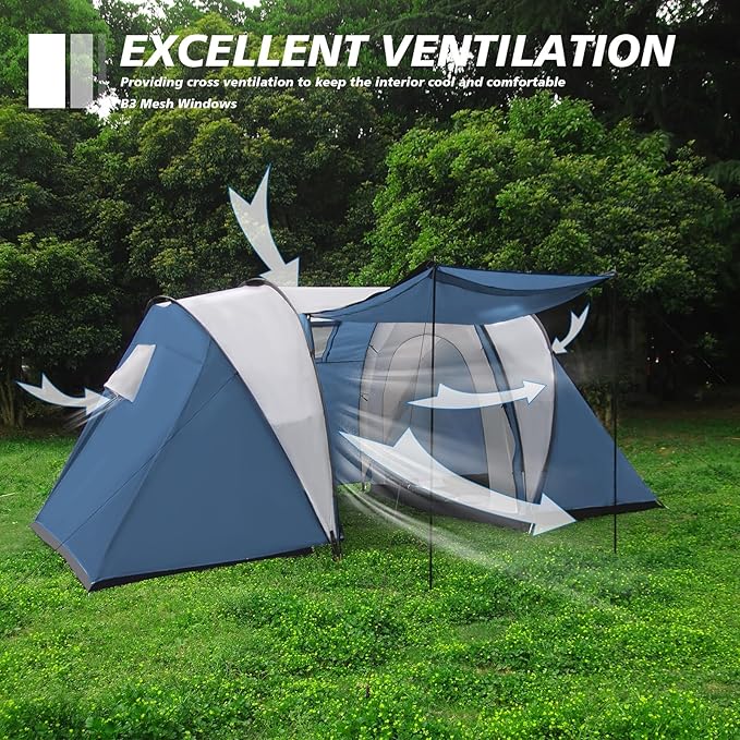 - Multifunctional Porch Tent: Enjoy a luxurious 70% more outdoor space than 4-person tents for camping! Step into a living area to unwind and store gear. Plus, it serves as an excellent sunshade canopy, providing ample shade on hot days with good ventilation and unobstructed views. Elevate your outdoor experience!