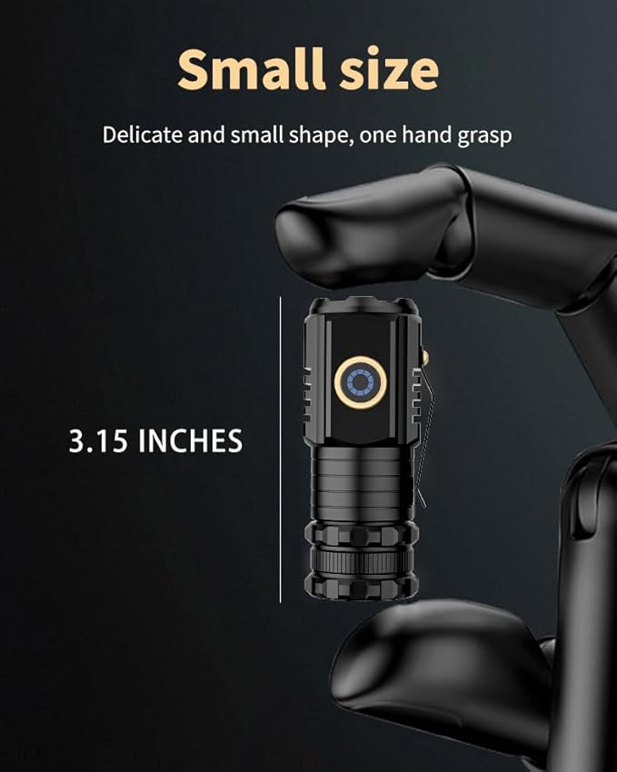 - Small Size: This compact flashlight is small and 3.7oz light enough to slip into a pocket, backpack or purse. Super Mini size is lightweight and small enough for EDC and fits in the palm of your hand.