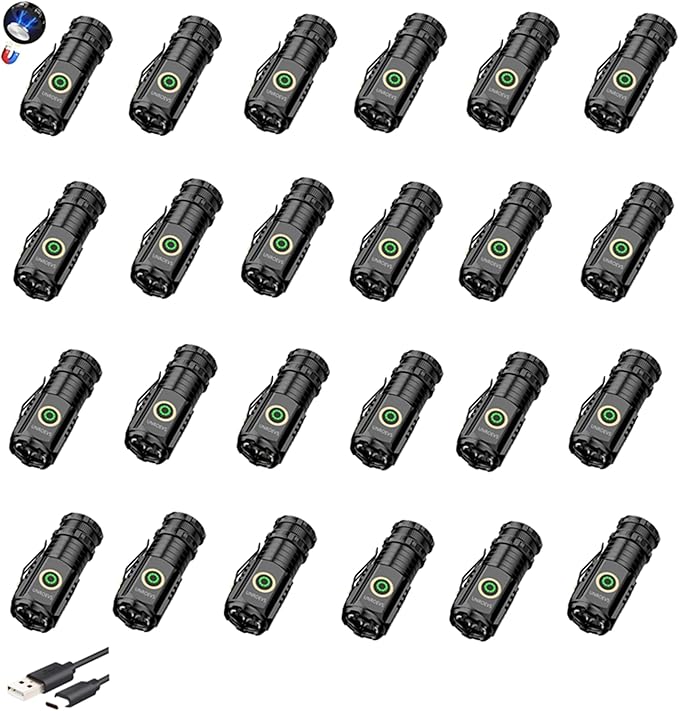 Mini Flashlight 2550 Lumens Rechargeable USB C Charging, Small Flashlights High Lumens 5 Modes, Pocket Flashlight with Clip, Magnetic Flashlight for EDC,Camping, Hiking,Emergency (24pack)