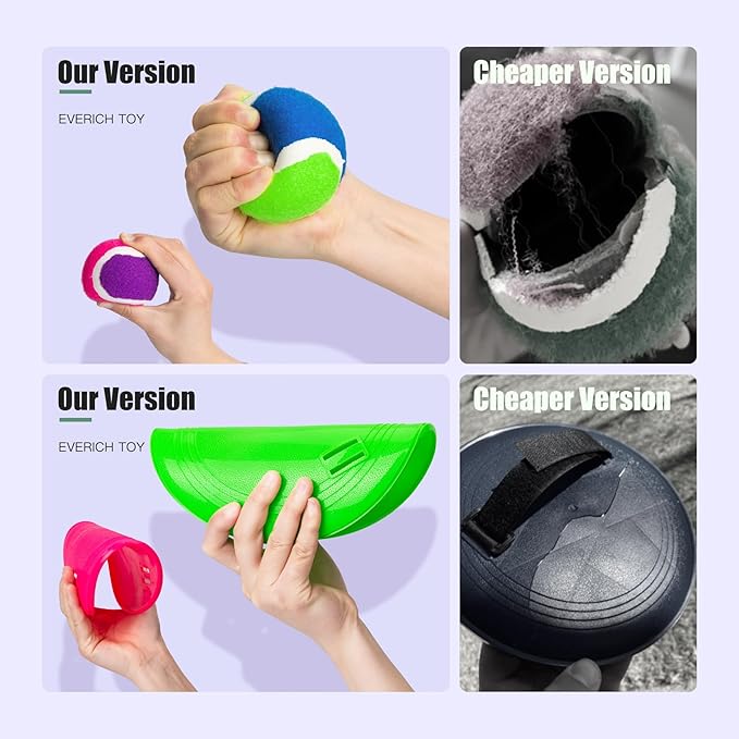 - 【Softer and High-quality Ball Set】Old Version's balls are very hard without elasticity, which is hard for kids to catch it. Our balls are much stronger and softer yet with better stickiness, so that kids can catch the balls easily and comes with comfortable feel, kids won’t lose their fun as they can keep catching the ball. Always have lots of fun for your little ones, even to family reunion game.