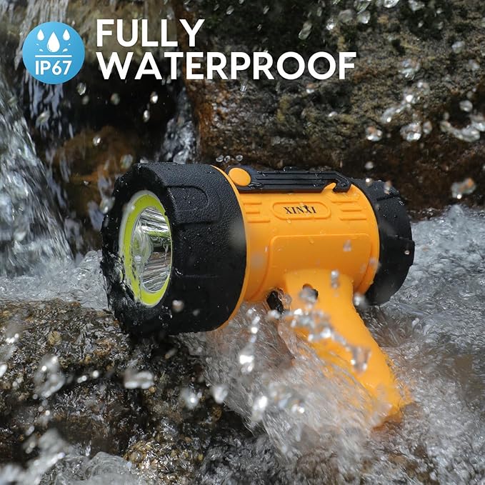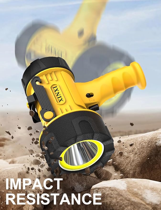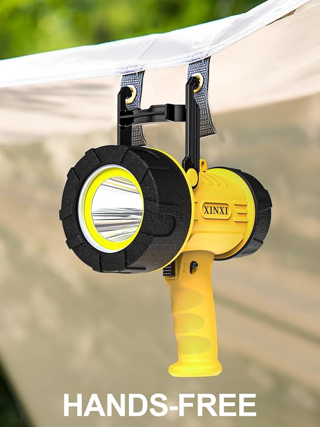 XINXI 1000,000 Lumens Rechargeable Spotlight with COB Floodlight, 6 Light Modes and USB Charger for Hiking, Boating, Hunting, IP67 Waterproof Handheld Flashlight with red Filter(Yellow)