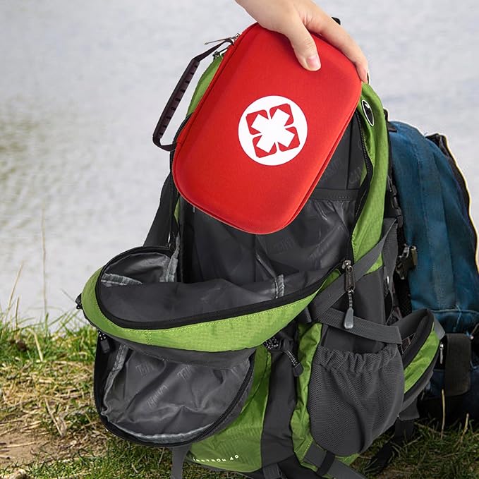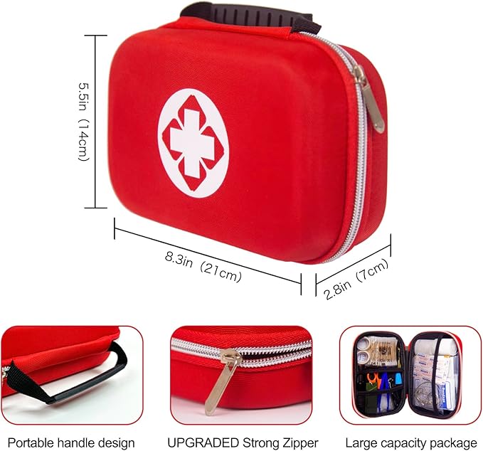 - High-quality Bag: All the emergency medical supplies are neatly arranged in a red waterproof Bag. Small and lightweight, easy to carry, and can be placed in cars, backpack, drawer, etc. Especially suitable for carrying on outdoor hikes and equipped in forest cabins.