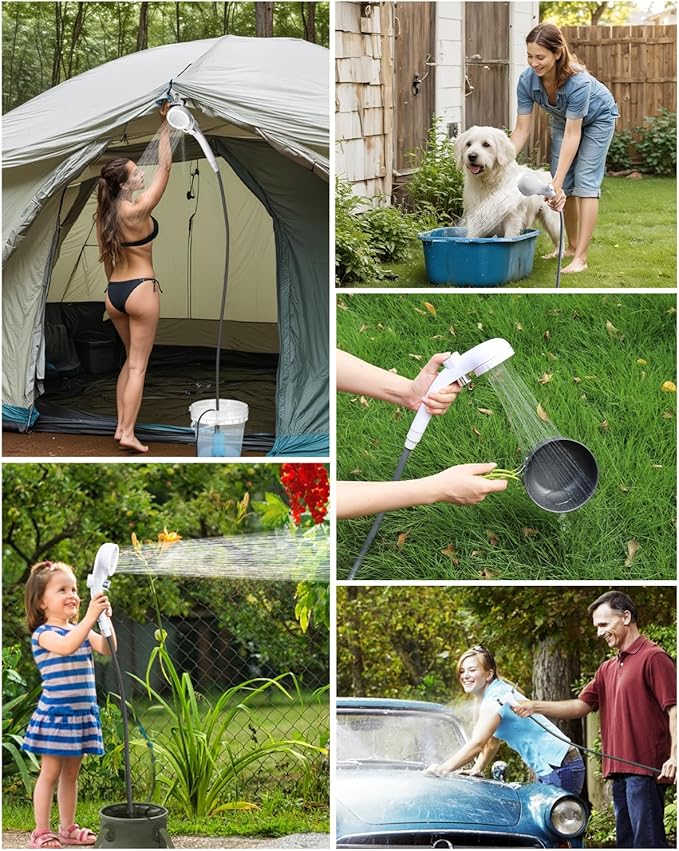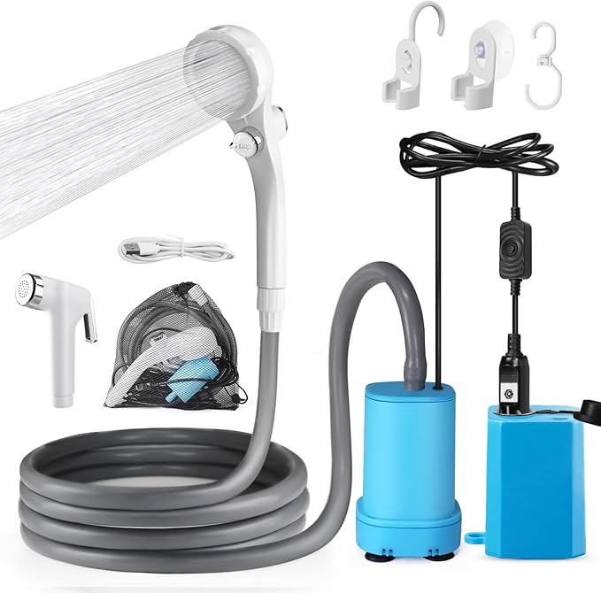 AUTOPkio Portable Shower for Camping, 2-in-1 Camp Shower Pump with Rechargeable Battery, Portable Outdoor Shower for Beach Hiking Outdoor, Pet Cleaning