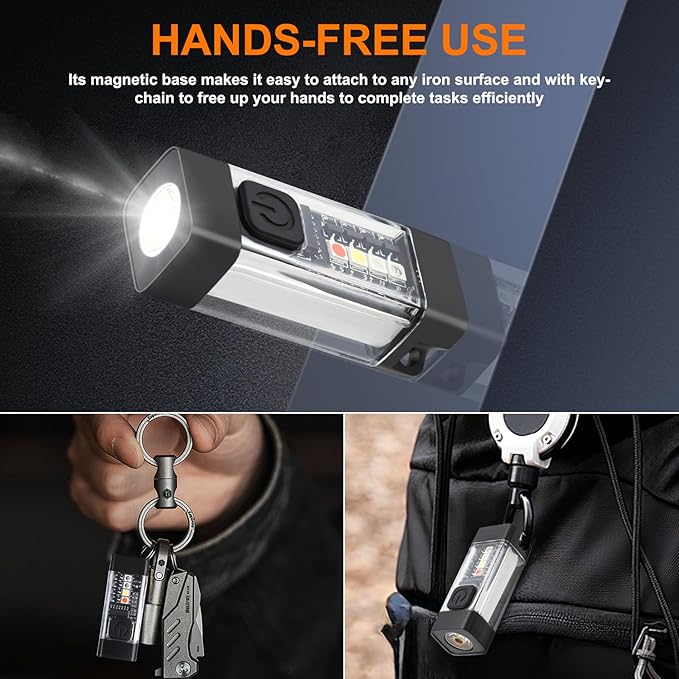 Mini EDC Flashlight - 700 Lumens, USB C Rechargeable Keychain Flashlights IP65, Magnetic with UV Red Blue Light- Ideal for Everyday Carry, Camping, Hiking, Emergency