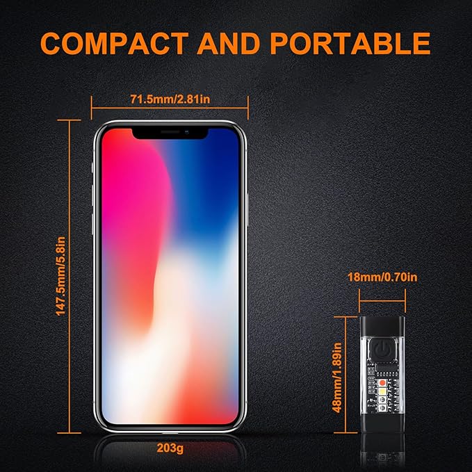 - 𝗦𝗺𝗮𝗹𝗹 𝗦𝗶𝘇𝗲 & 𝗣𝗼𝗿𝘁𝗮𝗯𝗹𝗲 -- 1.89 inches * 0.7 inches, 19g ultra-mini design, and with magnet and keychain, so that it can become you can carry the ultra-small illuminator, when you repair precision instruments need lighting can also come in handy.