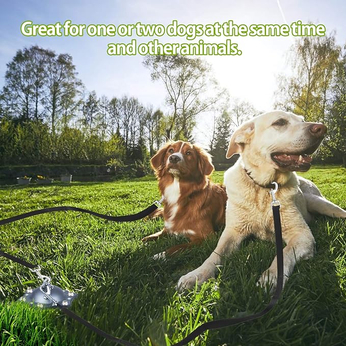 - 💝【360° Swivel No Tangle】Designed with a full 360° swivel ball, with the ball rotates around as the dogs move, it provides a tangle-free experience even with multiple dogs, giving your dog the freedom to explore while ensuring their safety and preventing them from wandering off. Swivel base loop can easily connect the tie out cable or leash
