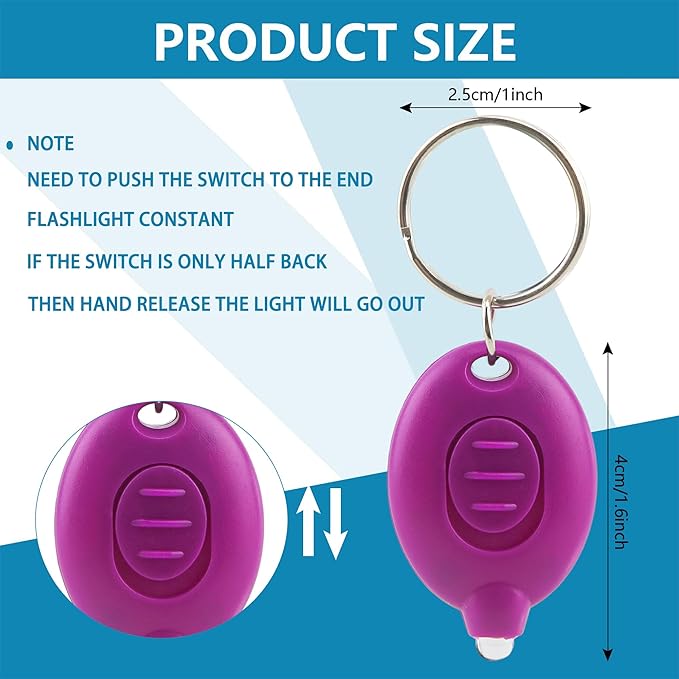 - Package includes: you will get 10 pieces of purple mini flashlight keychains, perfect for parties, emergencies or daily use. Its vibrant purple color adds a touch of style to your everyday essentials