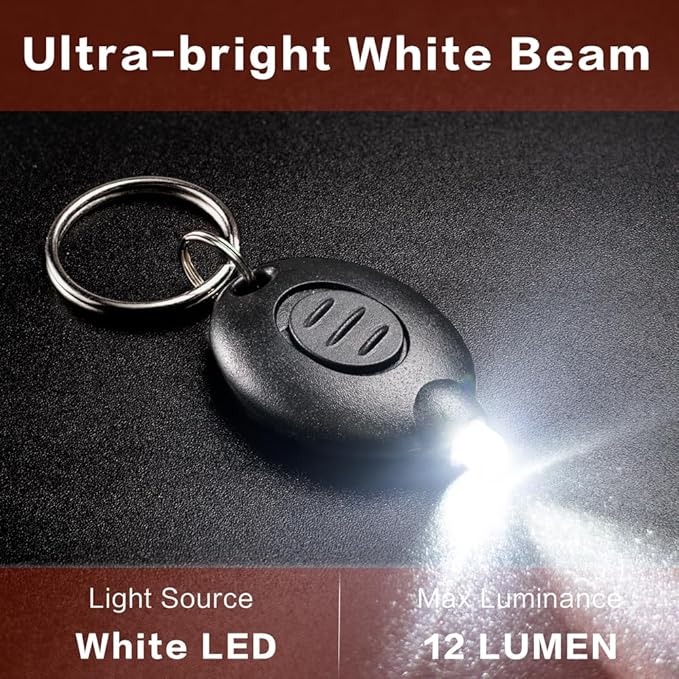 - Ultra Bright Keychain Flashlight: The LED keychain flashlight offers 12 lumens LED light, it is very bright when it is used in a close range.