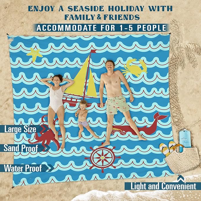 - 🌴BEACH BLANKET SANDPROOF WATERPROOF:78''×81'' fits 1-5 adults.Made with ripstop 210T polyester.The sand will fall down when you shake the blanket.The little water left behind will dry out in minutes.