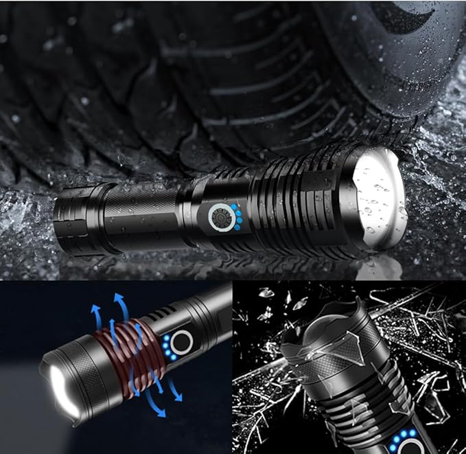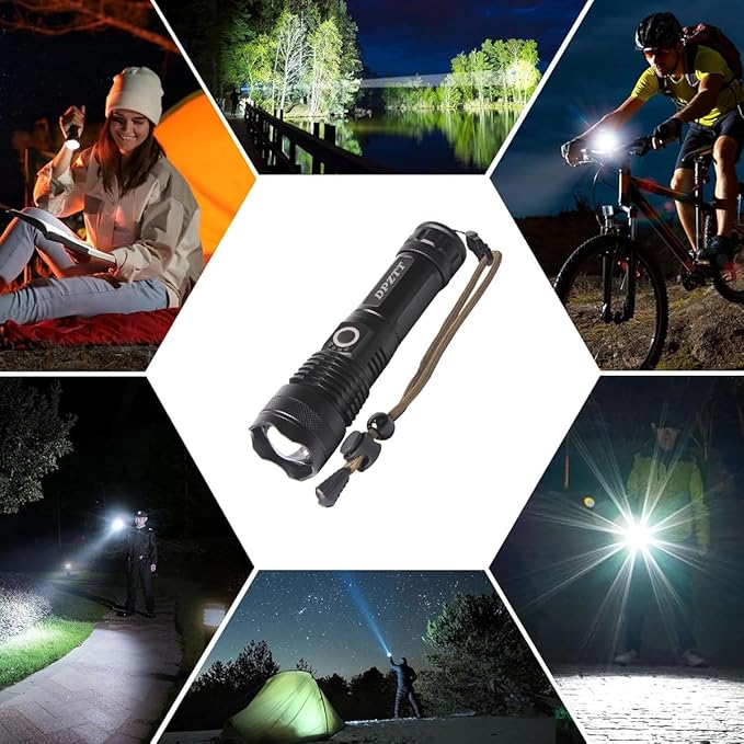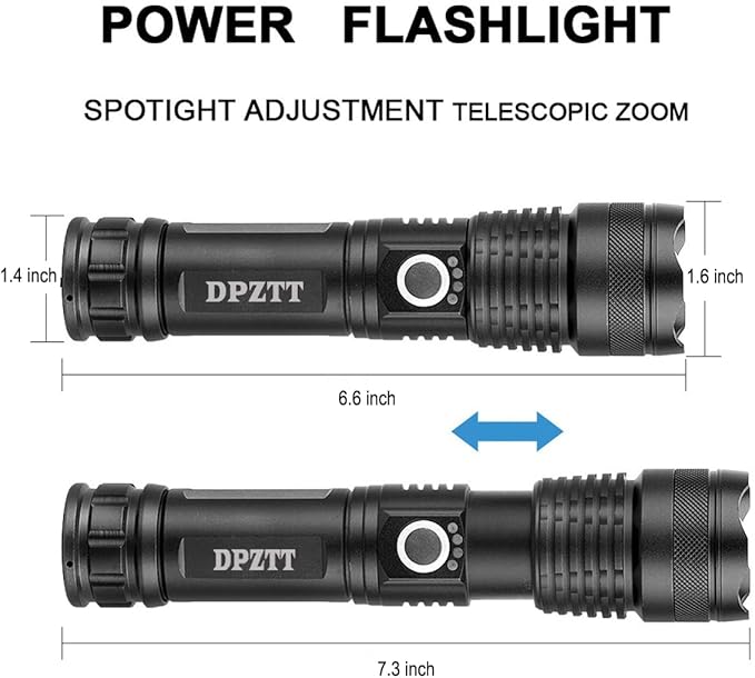 - Flashlights High Lumens: DPZTT rechargeable flashlight is equipped with an ultra-bright upgraded LED chip, which can reach a maximum brightness of 990,000 lumens. The bright flashlight can light up to 1000ft² area or 1500ft distance to meet various lighting needs, such as camping, hiking, home, emergencies.