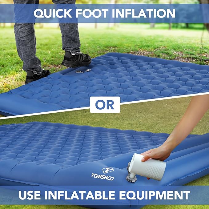 TOMSHOO Double Sleeping Pad, Inflatable Sleeping Mat Built-in Pump Camping Mat Upgraded Support Camping Mattress with Pillow, 2 Carabiner, Carry Bag, Repair Kit-77''L*53''W*5''H