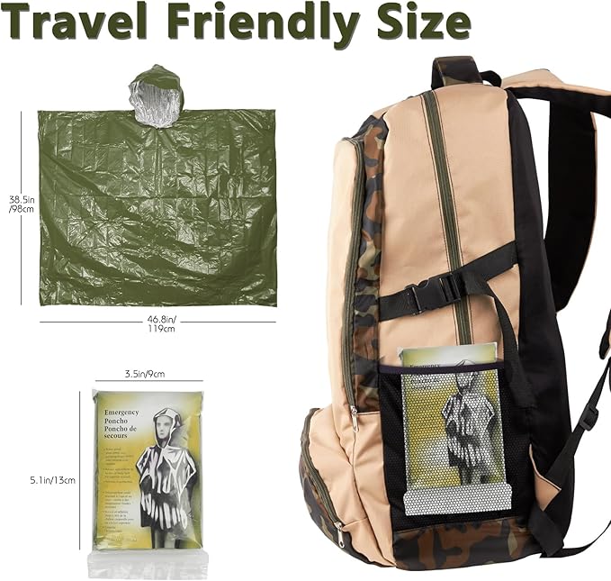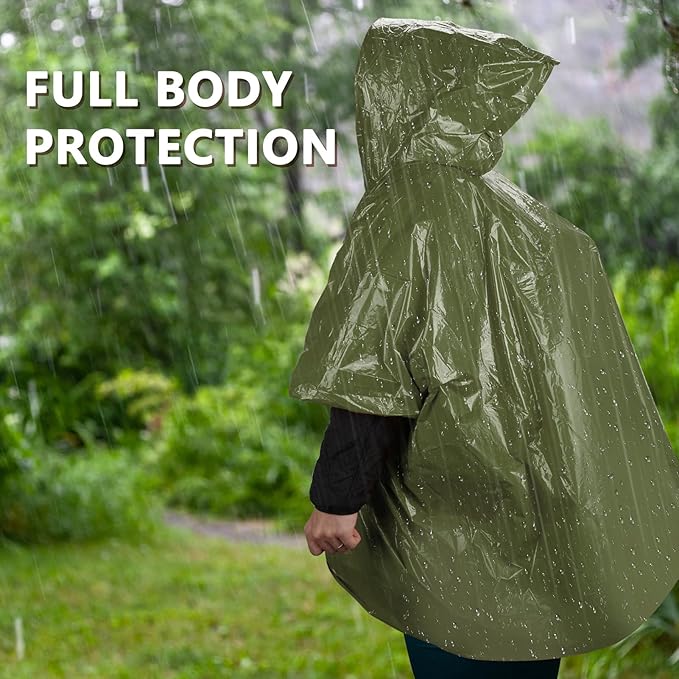 Emergency Rain Poncho - Portable Camping Emergency Blankets, Survival Blankets, Reusable Weather Resistant Raincoat