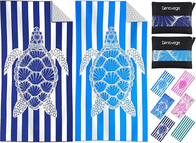 2 Packs Microfiber Oversized Beach Towel Lightweight Thin Sandproof Compact Quick Dry Clearance Towels Extra Large Sand Free Pool Travel Beach Essentials Accessories Women Adult Gift Blue Navy Turtle