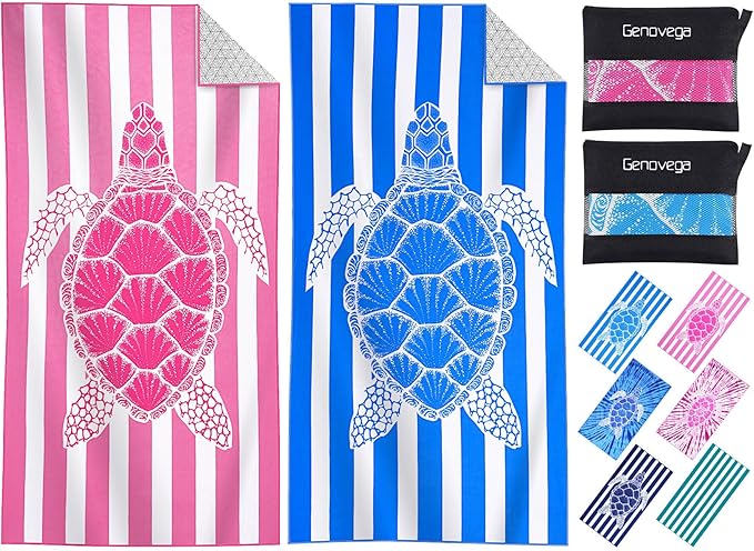 2 Packs Microfiber Oversized Lightweight Thin Beach Towel Sandproof Compact Quick Dry Clearance Towels Extra Large Sand Free Pool Travel Beach Essentials Accessories Women Adult Gift Blue Pink Turtle