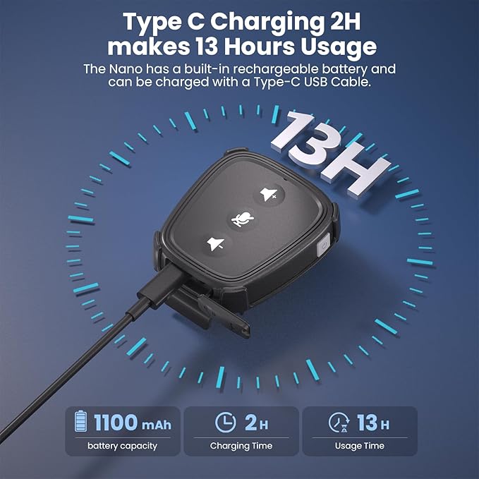 - 【Rechargable Battery Life】The CAME-NANO Action Communicator features a built-in rechargeable battery with the convenience of USB Type-C charging. Enjoy up to 13 hours of uninterrupted talk time, ensuring your conversations are always seamless.Elevate your communication experience with the CAME-NANO.where innovation meets convenience for unparalleled performance on the go.