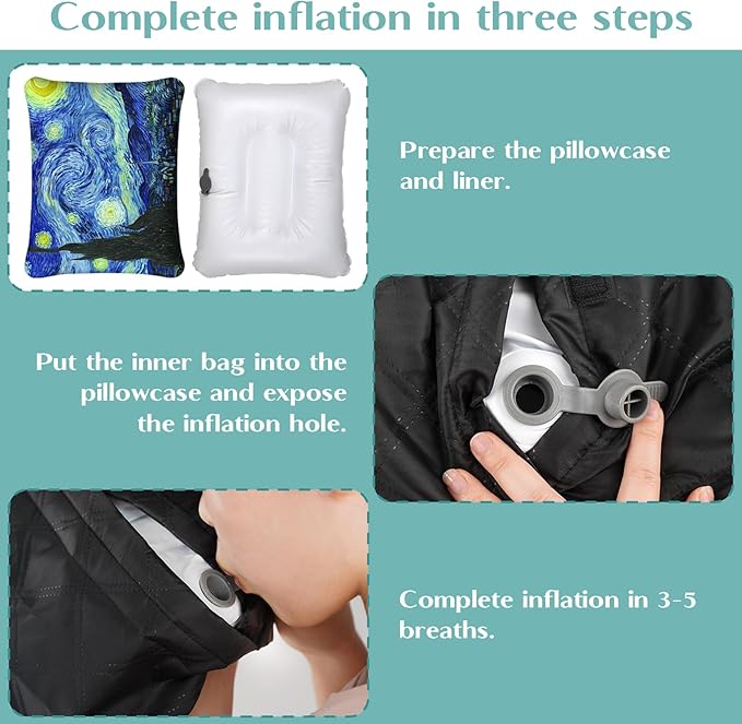 - 【Adjustable Inflatable Camping Pillow】Do you feel that the pillow is too hard or too soft when you go out? This inflatable camping pillow for sleep can be freely inflated according to your needs, and gives you comfortable head and neck support. In addition, you don't need to carry an inflatable pump, only need to blow 3-5 times with your mouth to meet the inflatable demand.