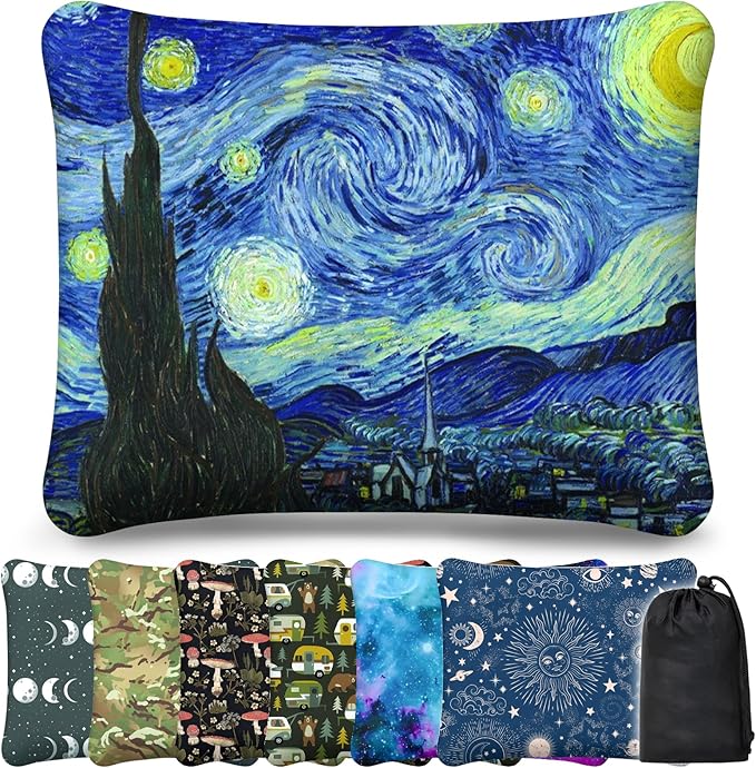 - 【Essential Outdoor Pillow】This patterned pillow is only L2.7 "* H4.3", 0.39LB after packing.It is smaller, more fashionable and practical. Whether you are in the camping tent, hammock, RV travel, or sleeping on the beach, our inflatable pillows will create a comfortable rest and sleep environment for you. When you need to store it, it is also very simple, and will not occupy too much luggage space.