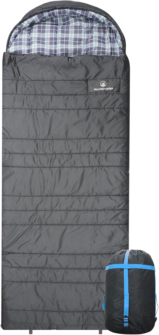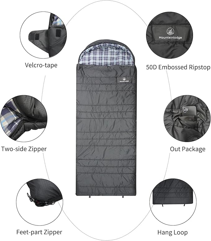 - 【Water Resistant and Skin-friendly Fabric】- Mountainlodge camping sleeping bag designed the Polyester which can be skin-friendly and waterproof.This means that when you use this sleeping bag outdoors, it can protect you from cold environments.Not only that, this travel sleeping bag can also be used indoors. When you want to take a nap on the sofa or bed, you can fully open it and use it as a blanket.
