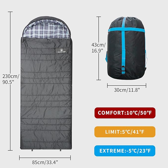 Polycotton Sleeping Bag for Adult&Kids,Cold&Warm Weather Large with Compression Sack and Water Resistant for Family Camping,Travel and Car Camping