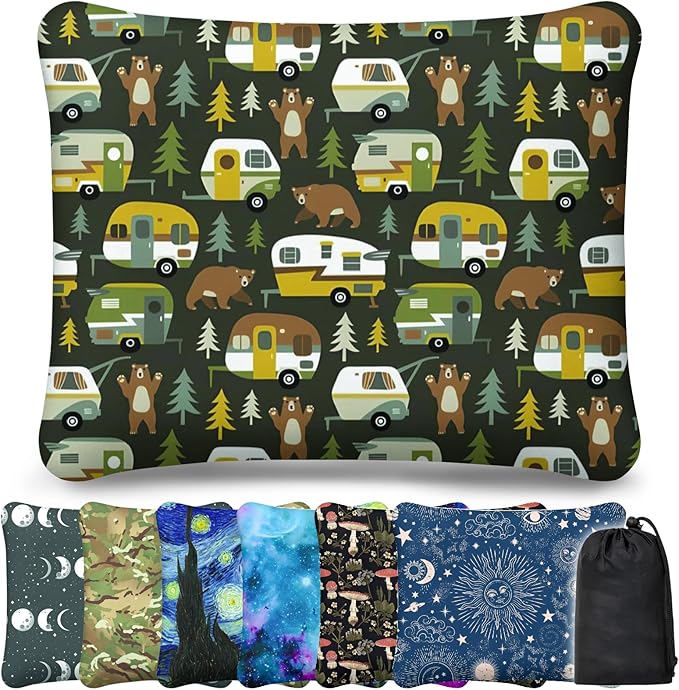 - 【Essential Outdoor Pillow】This patterned pillow is only L2.7 "* H4.3", 0.39LB after packing.It is smaller, more fashionable and practical. Whether you are in the camping tent, hammock, RV travel, or sleeping on the beach, our inflatable pillows will create a comfortable rest and sleep environment for you. When you need to store it, it is also very simple, and will not occupy too much luggage space.