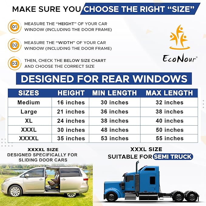 - EASY INSTANT INSTALLATION: Our automotive window mesh shades stay securely in place with a heavy-duty rubber band, similar to pulling a sock over the window. Installation is effortless—essential for truck drivers, providing better sun blockage than car window tint!