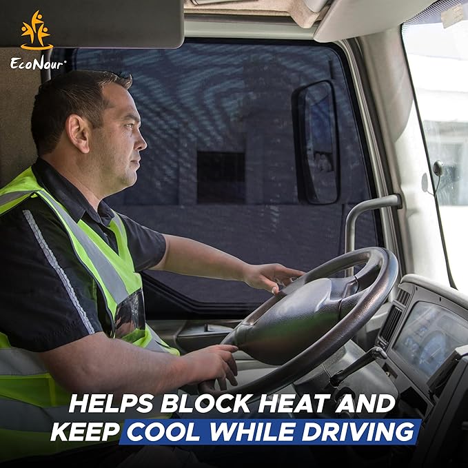 EcoNour XXXL Truck 2-Pack Side Window Shade | Front Side Windows Protects UV Rays and Sun Glare | Stretchable & Breathable Mesh Sunshade for Kenworth T680, Peterbilt 579, 589 | Driver Window Screens