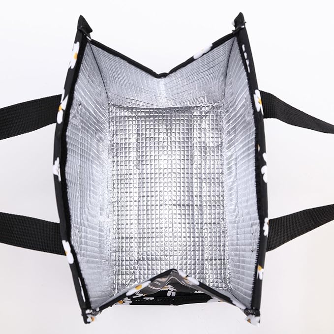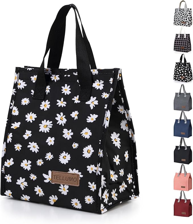TELLUMO Lunch bag, Insulated Lunch Bag for Women Men Large Lunch Box Container Reusable Leakproof Tote for Office, Work, School, Beach or Travel (Black Daisy)