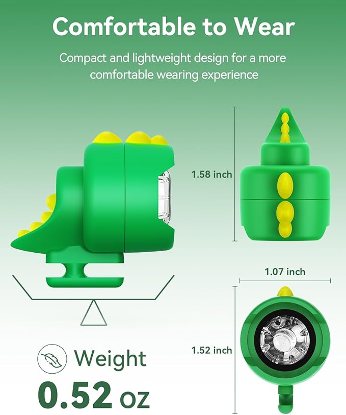 - IPX5 Waterproof: These shoes headlights are IPX5 waterproof , which can easily deal with rainstorm weather and the dew of wild camping.Plus, the adorable dinosaur design will make you more attractive during nights, doubling as a stylish shoes accessories