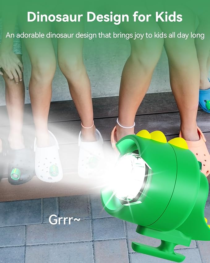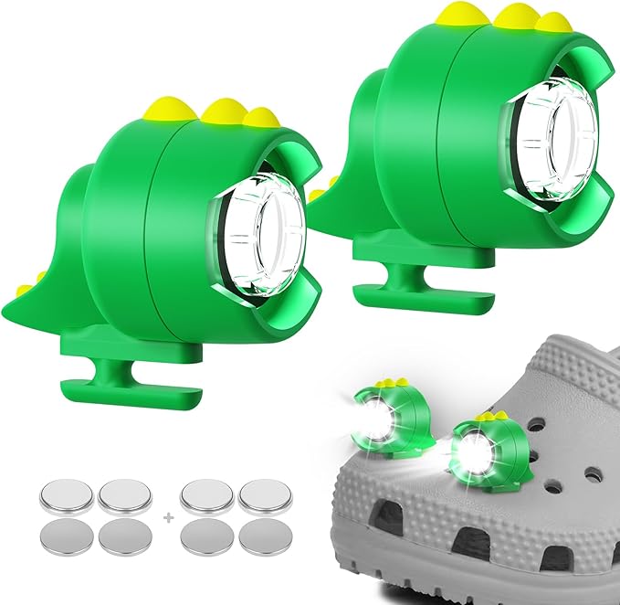 - Fantastic Idea: Our shoes lights are perfect for indoor and outdoor activities in the dark, such as hiking, biking, running, and walking the dog at night.The dinosaur-shaped shoes lights will make you more attractive during nights