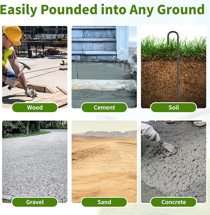 - 【Black Powder Coated】These ground anchors are made of malleable steel material. Black powder finish to help avoid rust. These heavy duty tent stakes are solid, no bend and break.